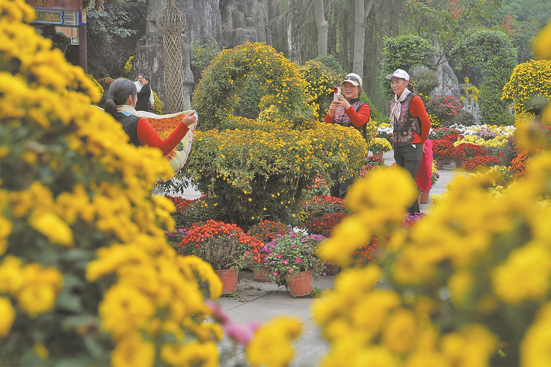 10月23日,游客在黄家湾景区赏菊游玩。重阳节临近,老人们在子女、朋友的陪同下,郊游赏景,享受美好时光。