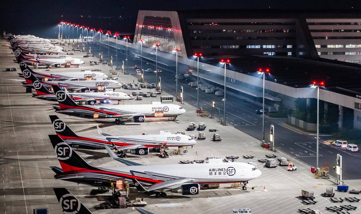 7月11日凌晨,繁忙的鄂州花湖国际机场。(湖北日报全媒记者 薛婷 摄)