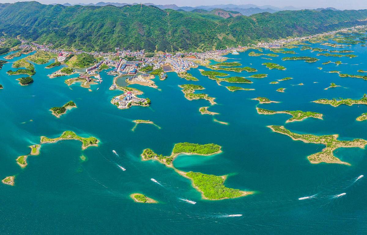 阳新县仙岛湖碧波荡漾,千余个小岛星罗棋布,宛如一幅优美的山水画卷。(湖北日报全媒记者 薛婷 摄)