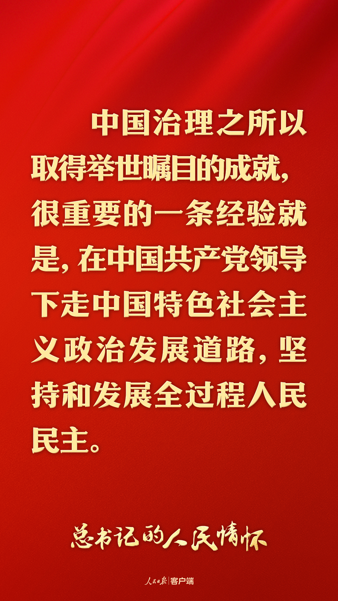 “人民民主是中国共产党始终高举的旗帜。”