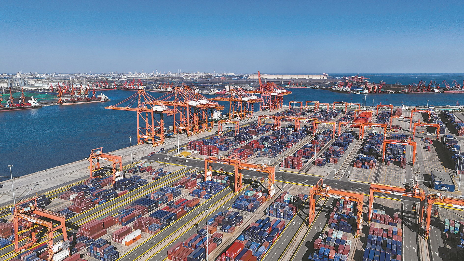 10月27日拍摄的河北省唐山港京唐港区集装箱码头(无人机照片)。