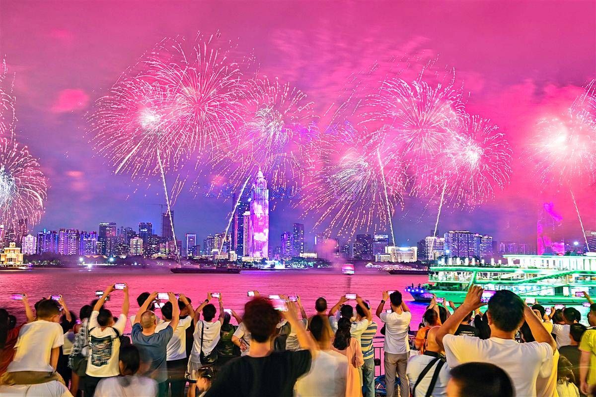 摄影发烧友范作金、罗海润提前两天在长江两岸选点,最终选定武昌江滩,他们说:“武昌江滩视野开阔无遮挡,对面汉口高楼密集,能完整呈现表演与城市天际线的交融,更能凸显武汉的气势。”市民赵妤去年拍摄长江文化艺术季开幕式的照片,登上《大众摄影》杂志,今年她又早早选好拍摄点:“太震撼了,希望明年有机会再来拍。”更多的市民和游客举起手机,照片、实况动图、短视频、长视频,社交媒体上花样繁多的同题美图,让外地人、外国人实名羡慕了。国外友人Edson P Bautista在湖北日报海外账号的评论区留言:“Nice firework my friend”(我的朋友,这烟花太棒了)。俄罗斯女孩@超爱丽娜在中文社交平台分享了自己的观礼感受:“说实话,我真的很羡慕中国人。”