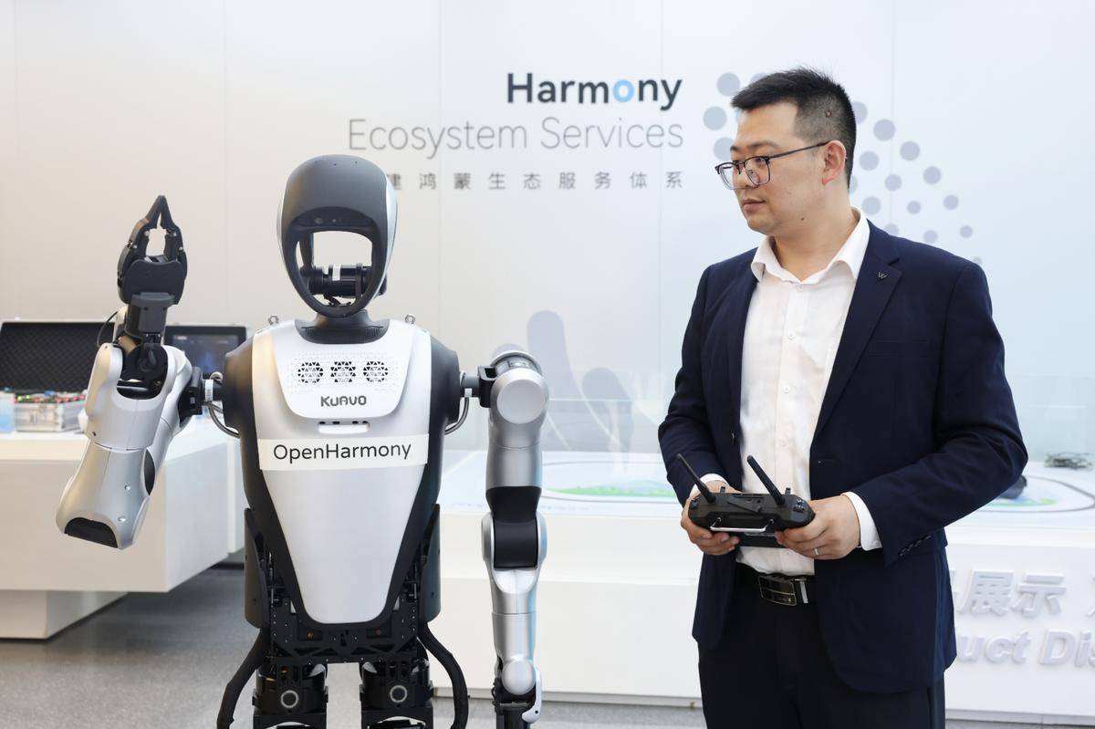 全国首款搭载鸿蒙系统的人形机器人正在调试中。(湖北日报全媒记者 陈少哲 摄)