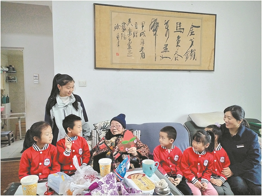 10月29日,市住房和城市更新局第一房产管理所联合尹集社区、沐恩幼儿园开展“童心敬老·传承美德”主题活动,组织孩子们走进公租房小区,通过赠送暖心豆浆、手工寿桃以及童趣表演等方式,为独居、高龄老人送去节日祝福。图为孩子们向老人赠送手工寿桃。