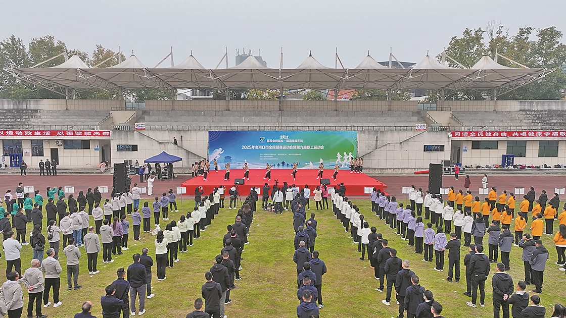 近日,2025年老河口市全民健身运动会暨第九届职工运动会开幕。图为运动会开幕式现场。