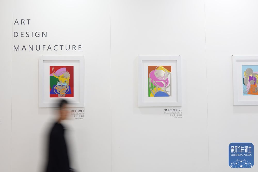 ↑11月6日,一名参观者路过华工科技激光科技馆内由激光技术二次创作的绘画作品。新华社记者 戴明轩 摄