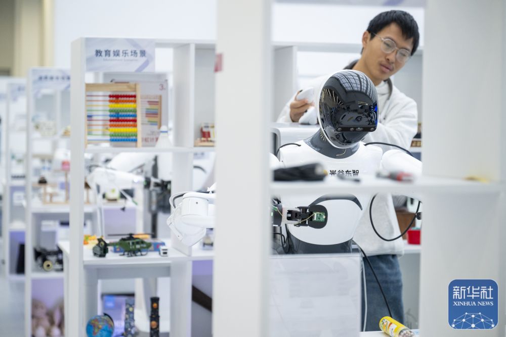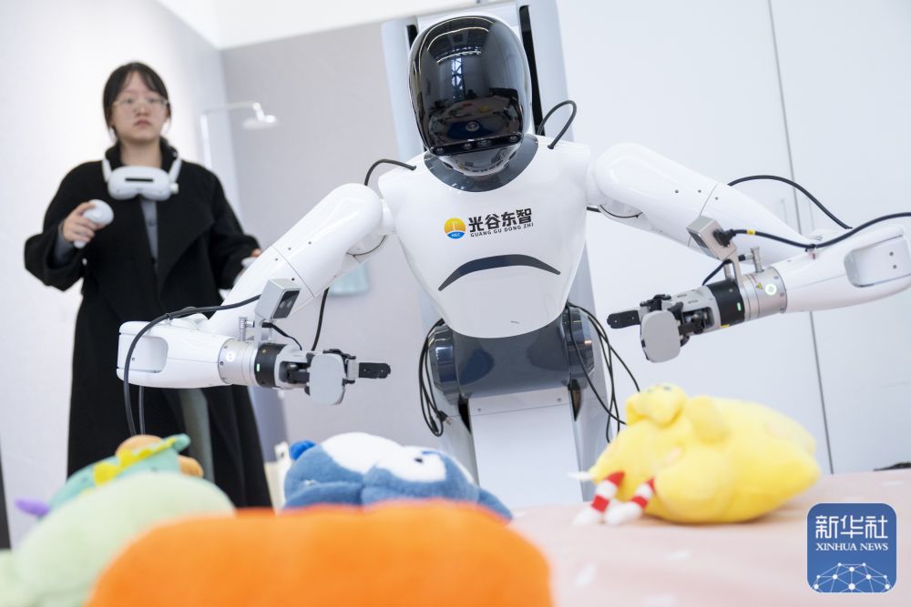 ↑11月6日,在湖北人形机器人创新中心,人形机器人数据采集员在进行数据采集工作。新华社记者 伍志尊 摄