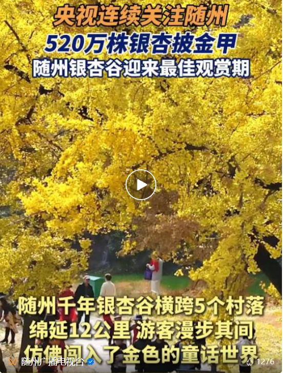 当秋日暖阳穿透层林,随州银杏谷迎来一年中最璀璨的时刻。央视《第一时间》《经济信息联播》聚焦报道,高峰时单日接待量突破3万人次。银杏谷的火爆,成为秋日文旅市场的耀眼存在。