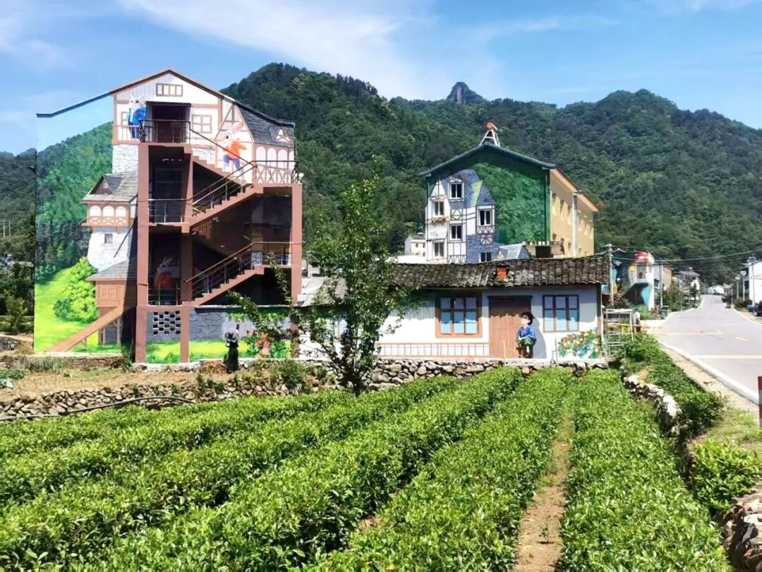 漫步下堡坪乡九山村,家家户户房前有路、屋后有花、墙上有画。茶园风光、采茶炒茶、杀年猪、种天麻、姑娘出嫁、儿童玩耍、梯田斜阳等乡村民俗图景配合剪纸、民间故事、打油诗等本地特色文化,绘于民居外墙,独具特色。
