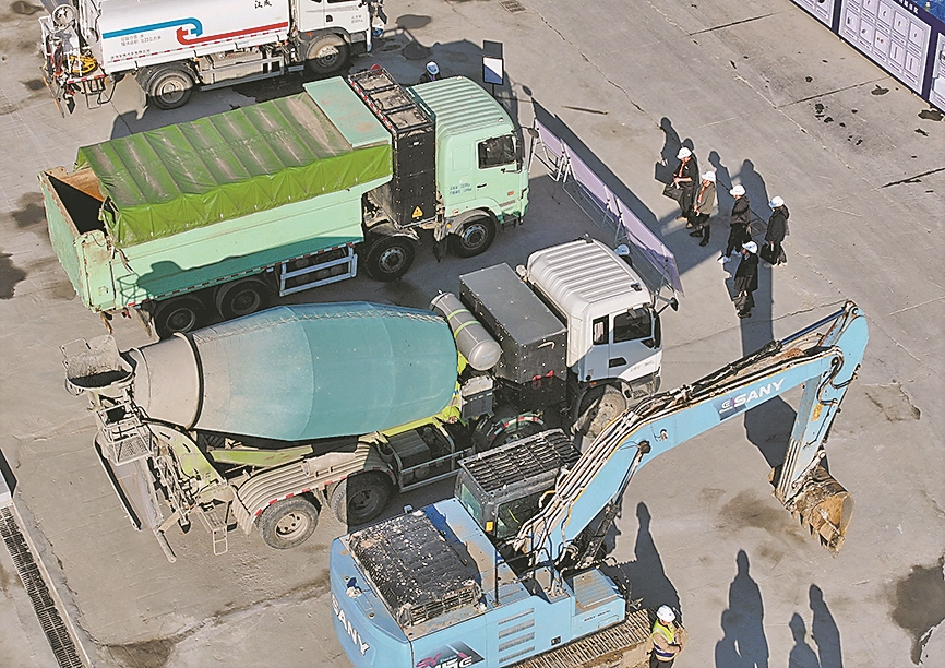 11月19日,参加活动人员在新能源机械展示区参观电动渣土运输车、电动挖掘机等大型工程车辆。这些大型工程车辆均使用新能源,为零排放设备。当天,全省房屋市政工程安全管理(监督)人员培训观摩活动在汉江城建国投滨江湾项目举行,来自襄阳、十堰、荆门、随州等地的建设安全管理人员沉浸式感受标准化施工的匠心与智慧。