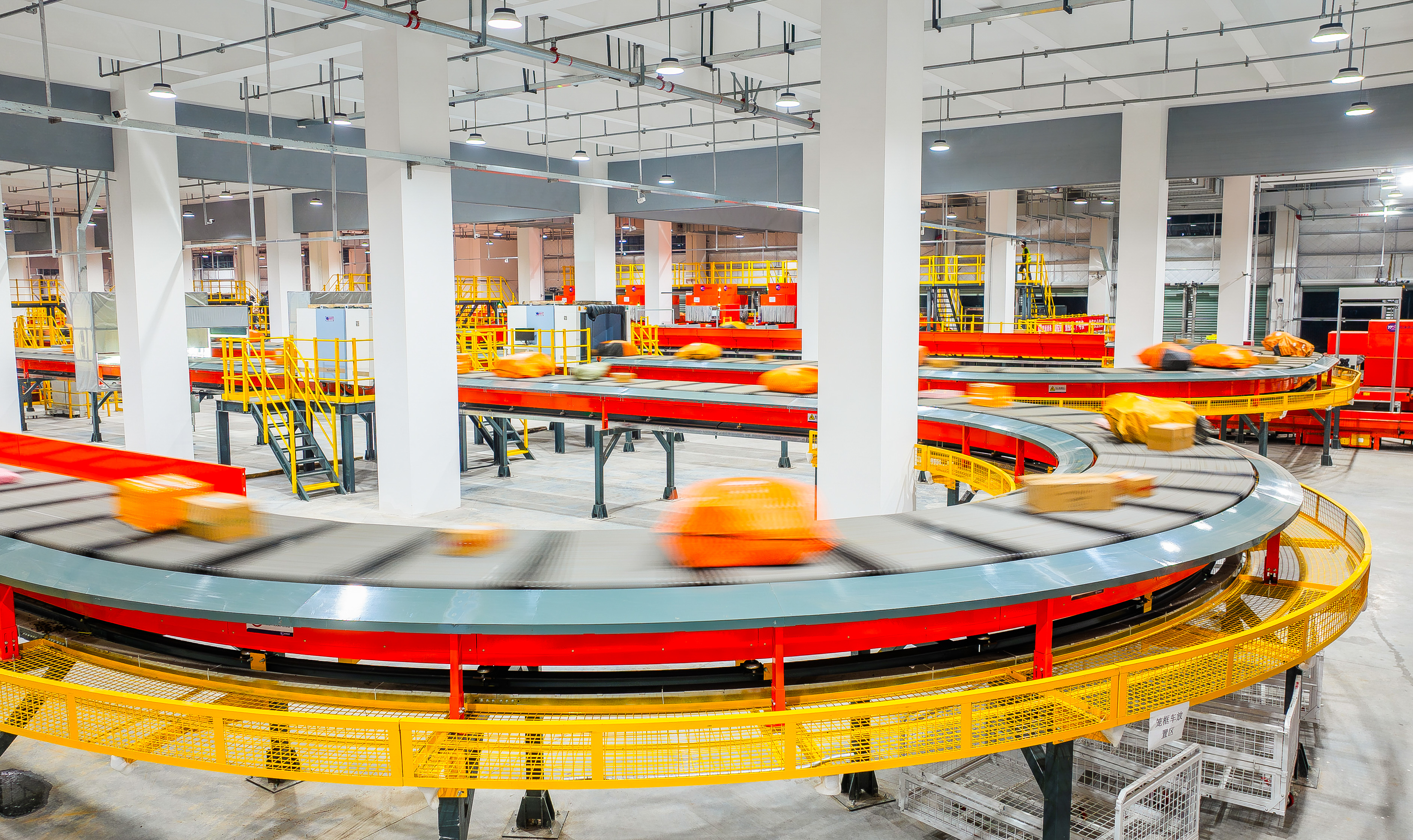 转运中心内,智能化分拣线以每秒2.7米的传输效率精准分拣货物。