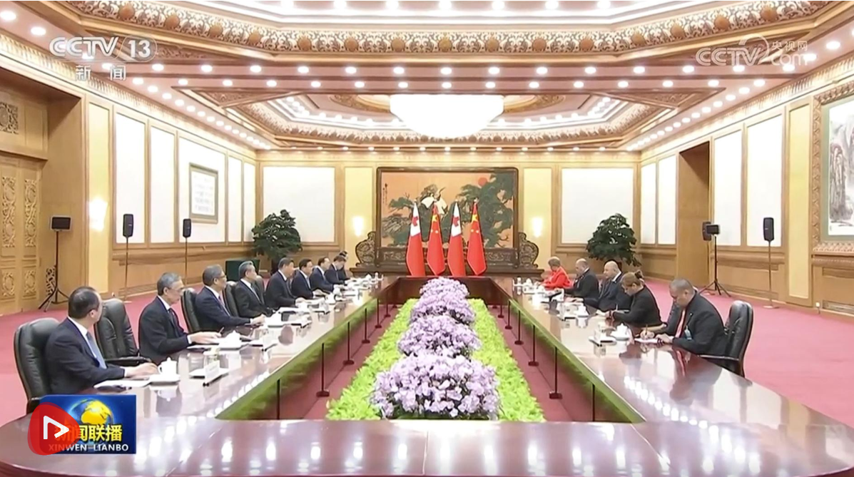 11月25日上午,国家主席习近平在北京人民大会堂会见来华进行国事访问的汤加国王图普六世。