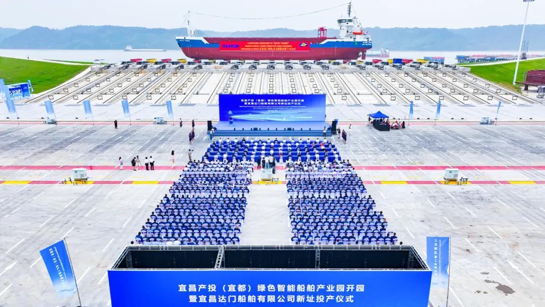 10月10日,宜昌产投(宜都)绿色智能船舶产业园开园暨宜昌达门船舶有限公司新址投产仪式举行。图片来源:宜昌三峡融媒
