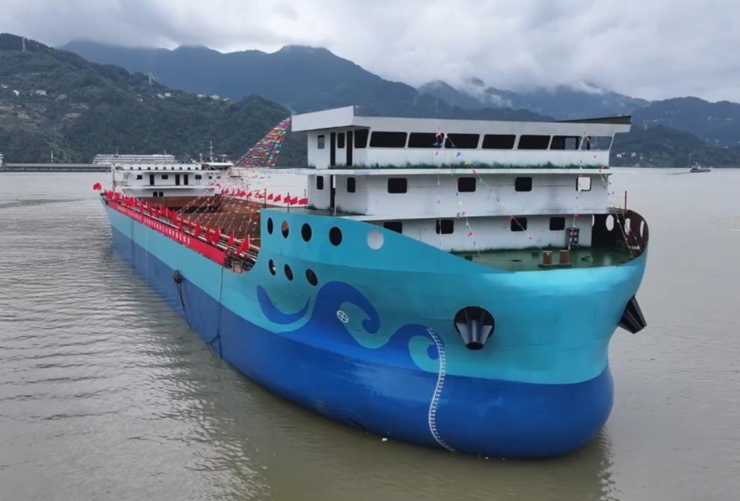 夷陵区下水的全国首艘磷矿绿色运输示范船,率先探索应用“甲醇发电+电力驱动”技术,全生命周期将减排4200吨二氧化碳。