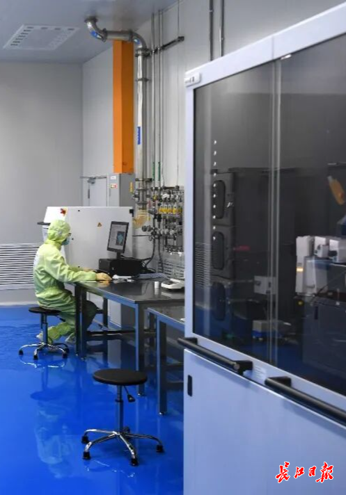 武汉光谷量子技术有限公司,科研人员在外延表征测试间工作。记者高勇 摄