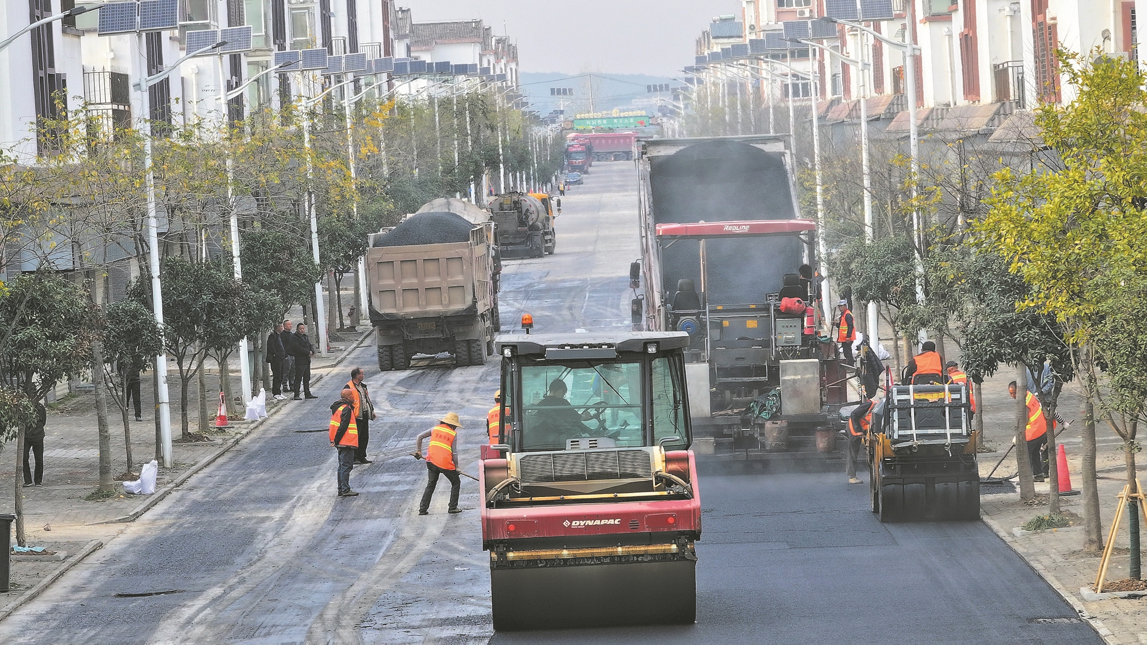 11月26日拍摄的南漳县九集镇乡镇道路改造施工现场。近日,南漳县对部分乡镇进行提质升级,改造门面招牌,电缆入地、道路提质升级、环境整治等系列改造,乡镇品质全面提升,乡镇越来越美。