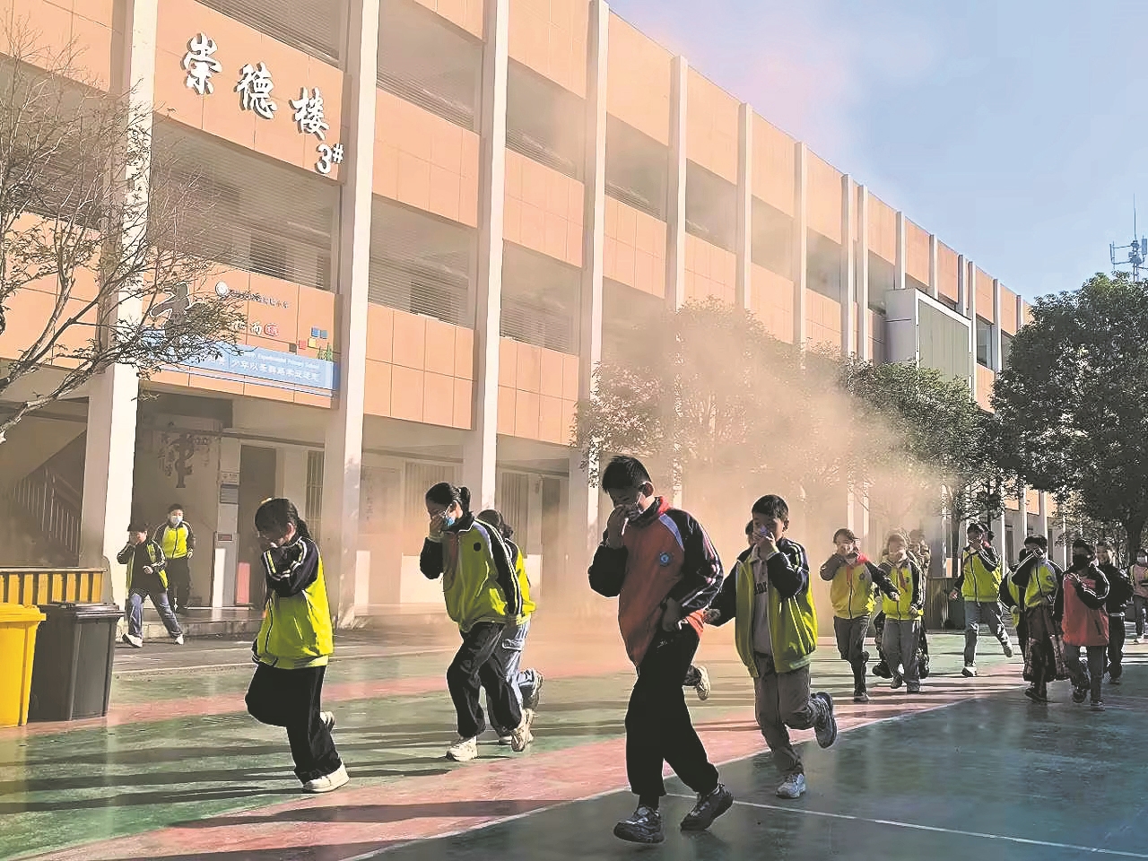 近日,枣阳市第四实验小学开展消防应急演练,全体师生参与演练,筑牢校园安全屏障。