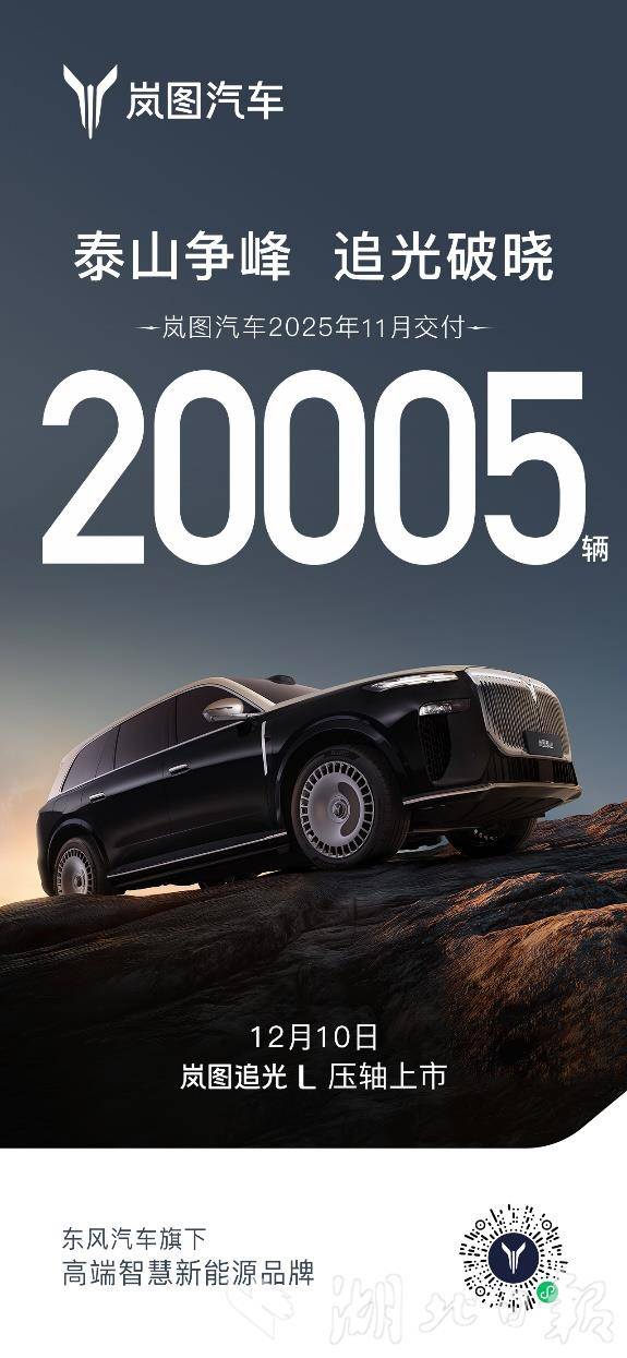 12月1日,岚图汽车发布11月销量数据,单月交付20005辆,同比增长84%,再创历史新高,实现“十连涨”,保持高质量发展强劲势头。
