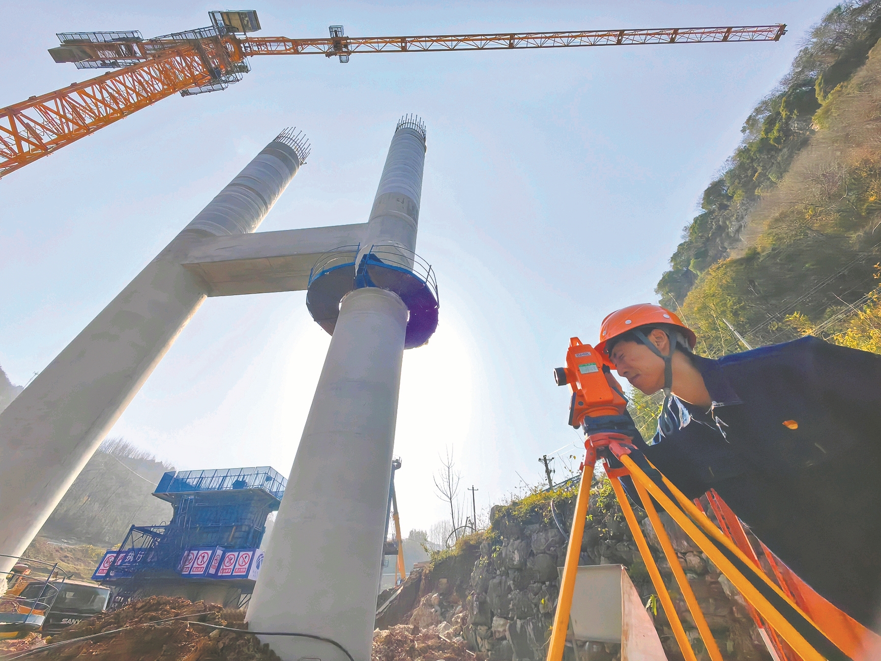 12月1日,湖北特检院襄阳分院检验员对省级重点项目平宜高速公路项目现场的塔式起重机进行检测。