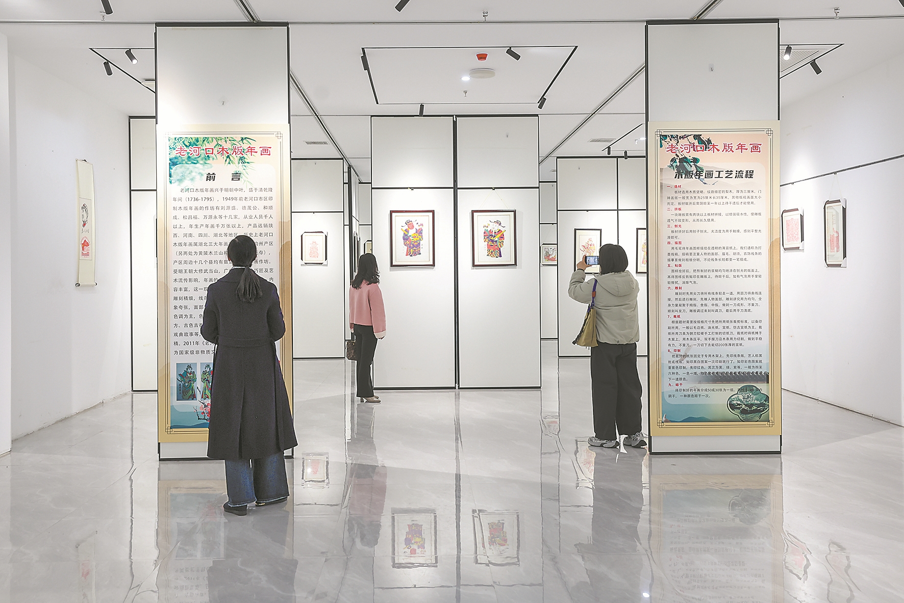 11月26日,市民在老河口市群艺馆木版年画非遗体验馆参观,感受非遗魅力。老河口市是湖北省目前仅存的木版年画产地。为保护传承这一民俗瑰宝,2011年,老河口木版年画被列入国家级非物质文化遗产名录。