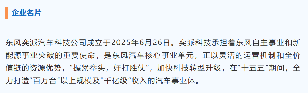 今年6月26日,东风汽车整合奕派、风神、纳米三大品牌,成立奕派科技。这一举措,是东风汽车在自主乘用车领域转型升级、握紧拳头打胜仗的关键一招。汪俊君表示,整合后的奕派科技,资源更加聚焦、决策效率更高、面向用户需求更精准。