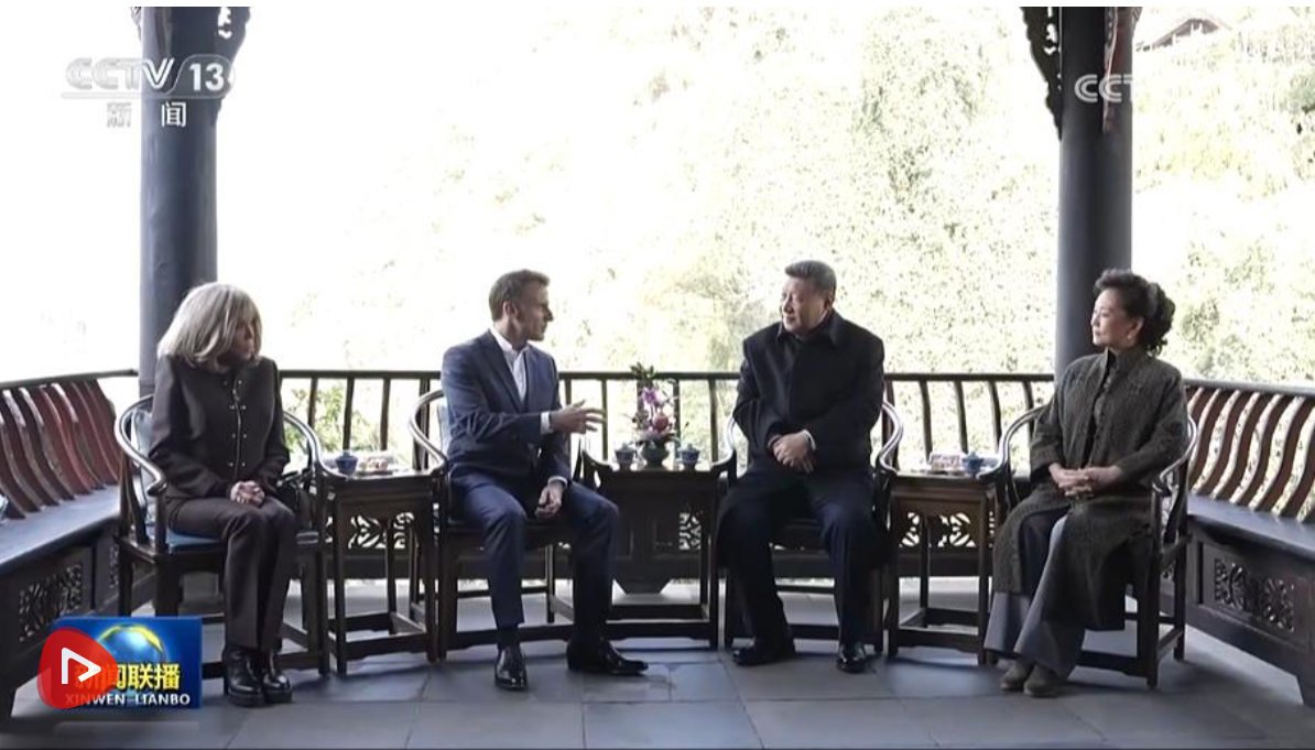 习近平夫妇邀请马克龙夫妇共进午餐,继续深入交流。