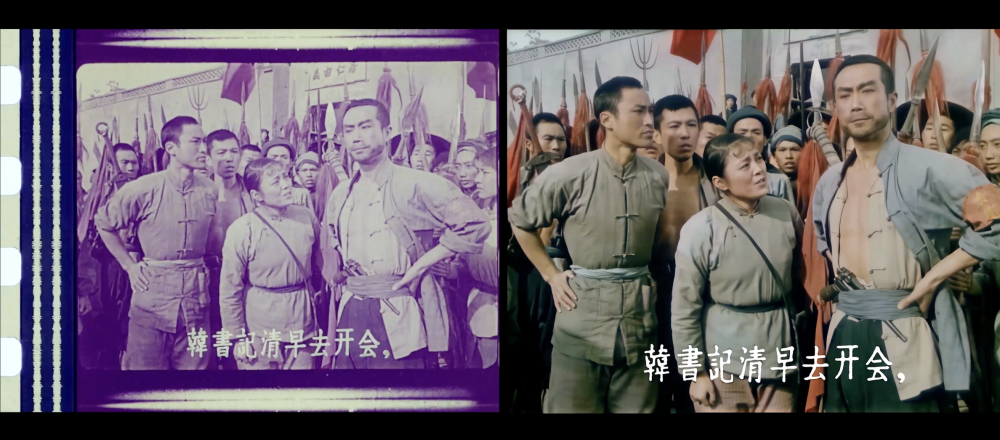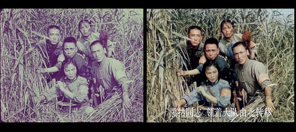 声音和调色修复则相对“克制”——不追求现代工业电影音效,以贴合当年技术条件模拟和还原声效;在调色无参考的前提下,适度提高饱和度,强化赤卫队“红”和洪湖“绿”的主题色……这支平均年龄约30岁的年轻团队密切配合,本着一帧一帧锤炼的匠心,审慎应用技术,最终把这部影片清晰还原。