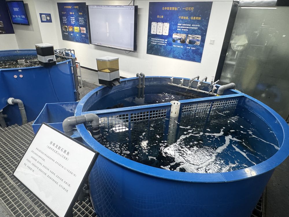“这是写字楼里的智慧鱼厂,也叫‘空中鱼厂’,是‘海鲜陆养’的微缩版。相较于传统的渔业养殖,鱼厂搭载绿色养殖循环系统,实现标准化养殖与全天候水质、鱼类健康监测。”武汉中科瑞华生态科技股份有限公司“空中鱼厂”技术负责人刘帅介绍,石斑鱼经8至9个月的饲养即可上市,市场价约45元每斤。