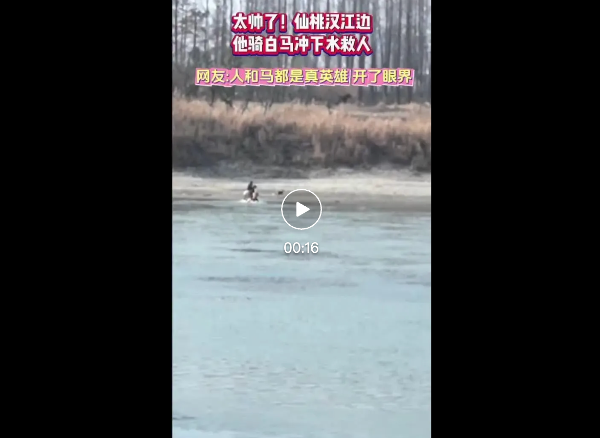 “三人一马”冲入江中接力救人