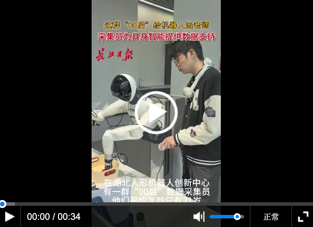 随着人形机器人产业进一步发展,产业分工越来越精细。采集员这个全新的岗位,正吸引越来越多年轻人。21岁的张嘉从一家温州的自动驾驶公司来到武汉投入机器人工作;22岁的刘书威学习计算机科学与技术专业,目前正在数聚变公司实习;21岁的林万利已成为公司运营管理负责人之一。“能教会机器人学习,非常有成就感。”张嘉说。