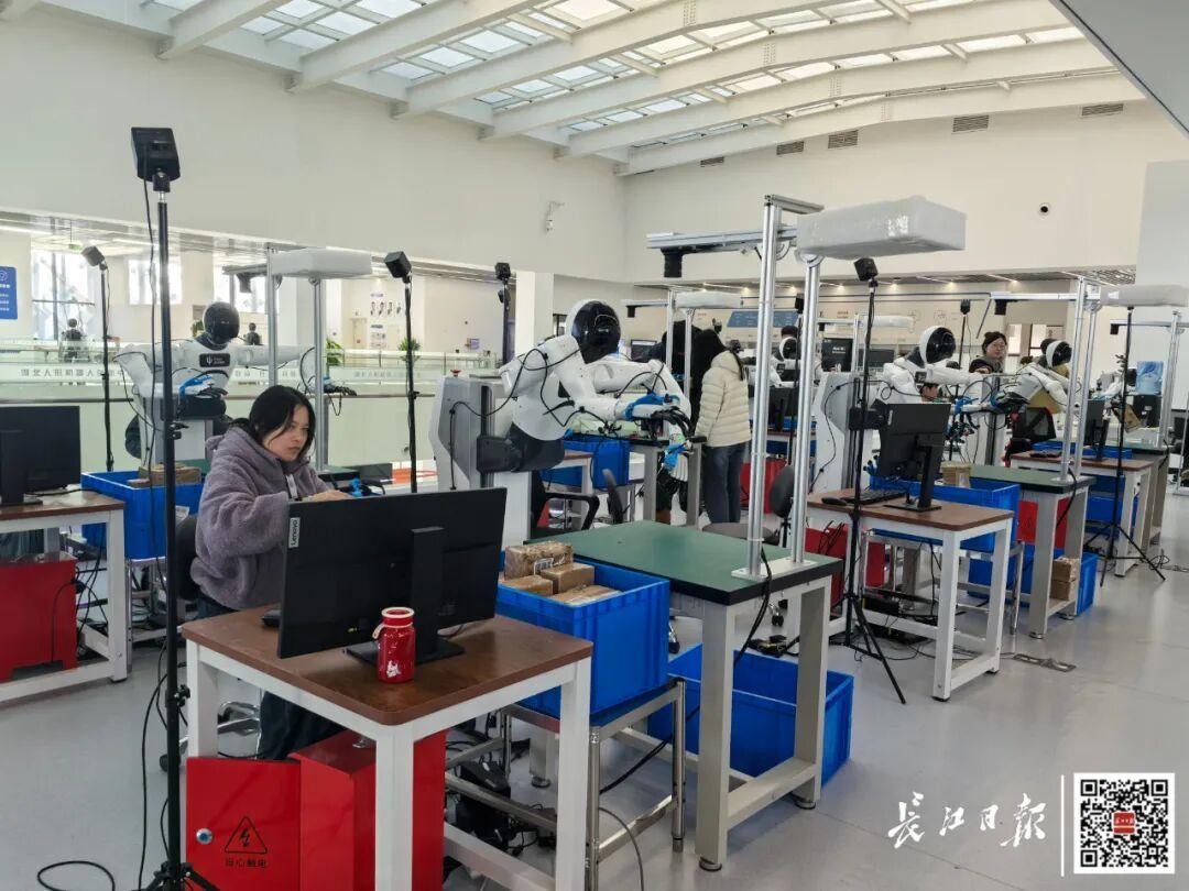 湖北人形机器人创新中心还原了仓库、超市、住宅、餐厅等23个工作和生活场景,是目前国内规模最大、场景最丰富、机器人款式最多的“机器人学校”。运营负责人黄全周介绍,中心拥有100多台各型机器人,每天能产出2.4万条有效数据,一年采集的有效数据将超千万条。