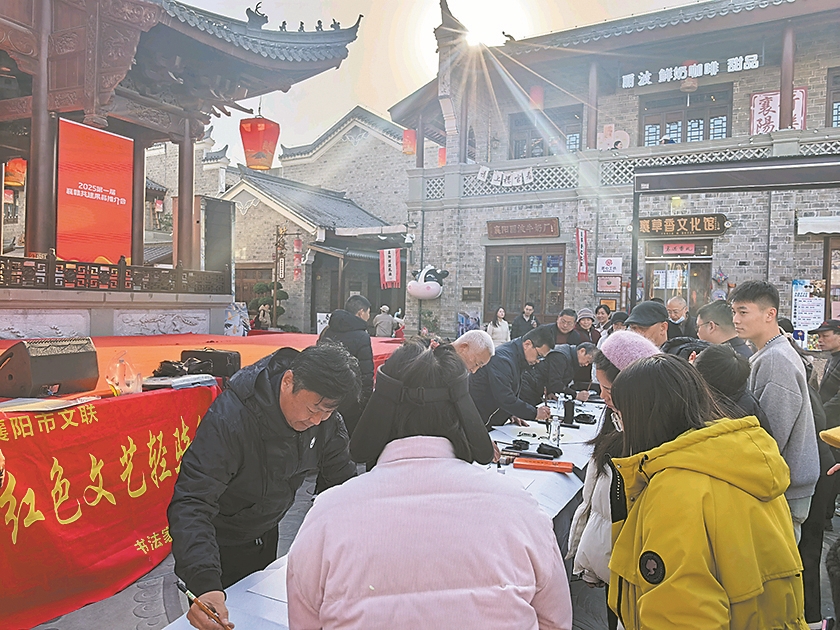 襄阳晚报讯【全媒体记者张亚婷 通讯员胡文静】12月13日下午,襄阳管家巷历史文化街区墨香四溢、笑语盈盈。市文联、市书法家协会组织本地书法名家,开展“汉水墨韵润古城”文艺志愿服务活动,吸引百余名游客和市民参与。