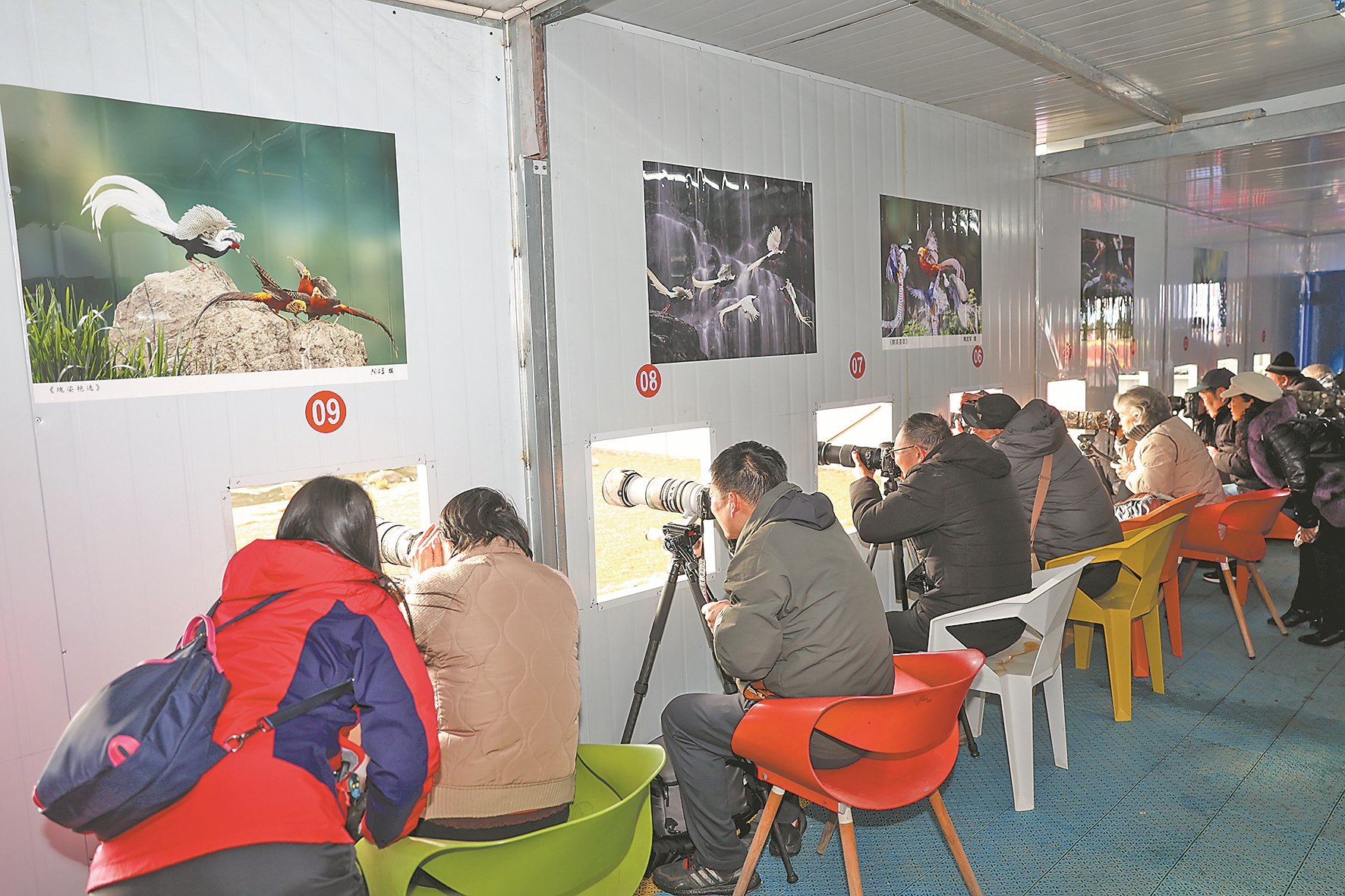 十二月十三日,观鸟爱好者在襄阳普罗旺斯薰衣草庄园观鸟站拍摄。 全媒体首席记者 杨东 摄