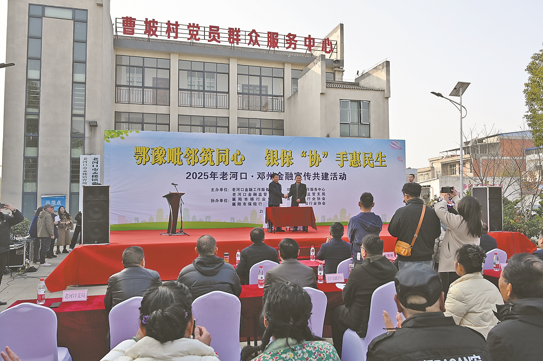 12月9日,在老河口市孟楼镇曹坡村,以“鄂豫毗邻筑同心、银保‘协’手惠民生”为主题的金融宣传共建活动启动。