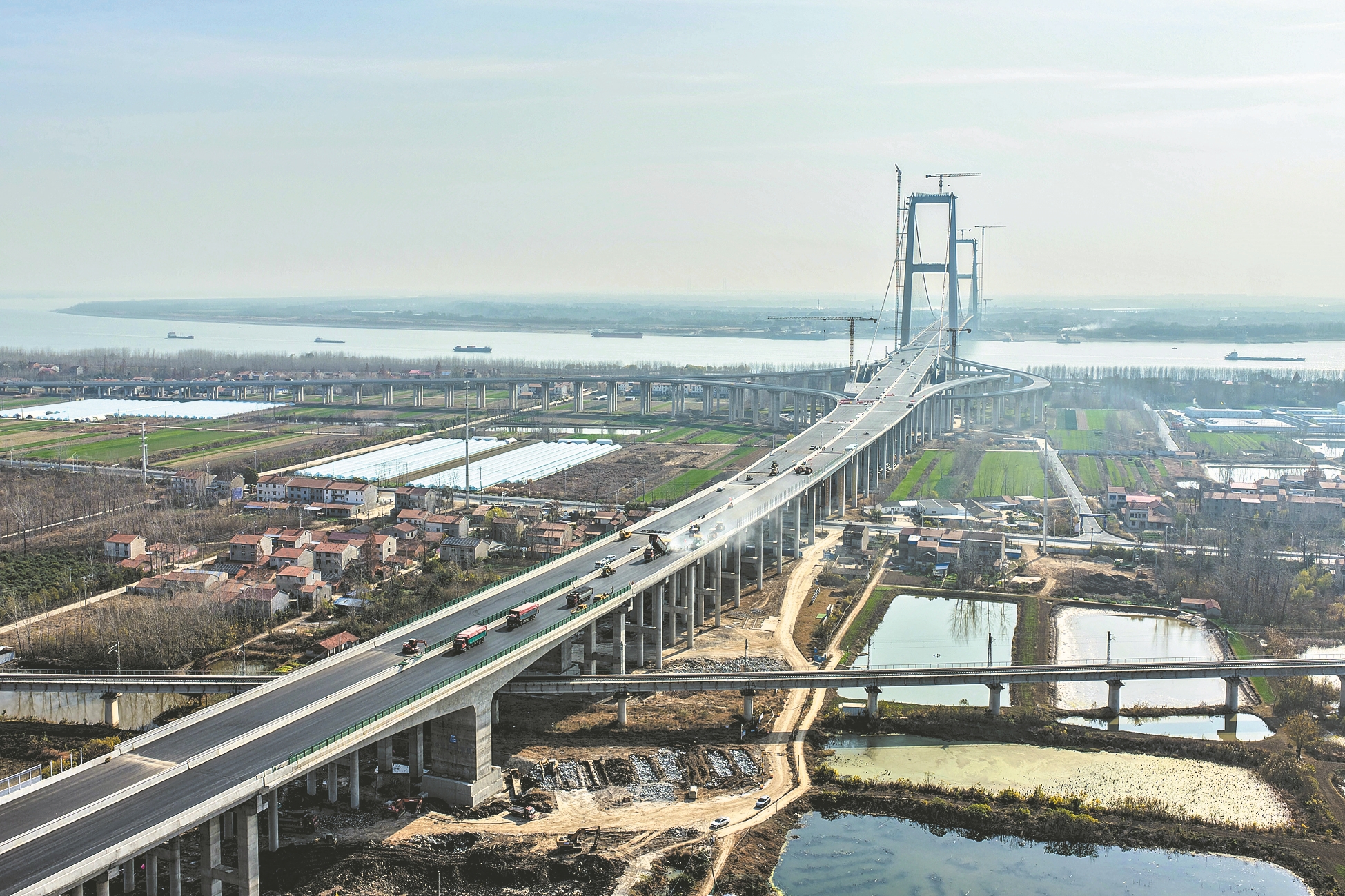 12月16日,随着最后一车沥青混合料摊铺碾压成型,由湖北交投投资建设、中铁十一局参建的新港高速双柳长江大桥及接线工程全线沥青摊铺完成,项目建设进入通车前的冲刺阶段。
