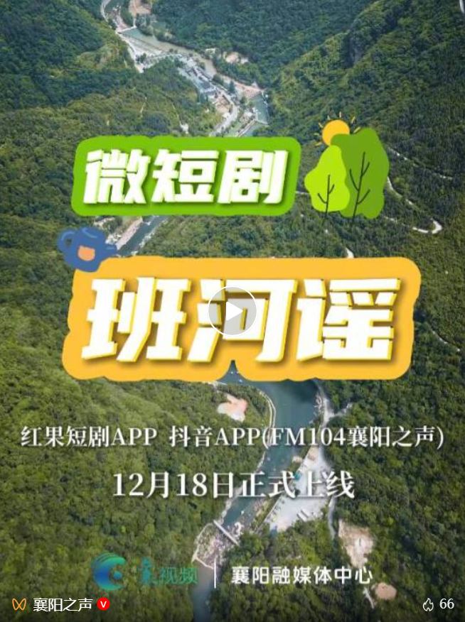 12月18日早8点,襄阳首部聚焦乡村振兴题材的微短剧《班河谣》,将在红果短剧APP、FM104襄阳之声抖音全网首播。