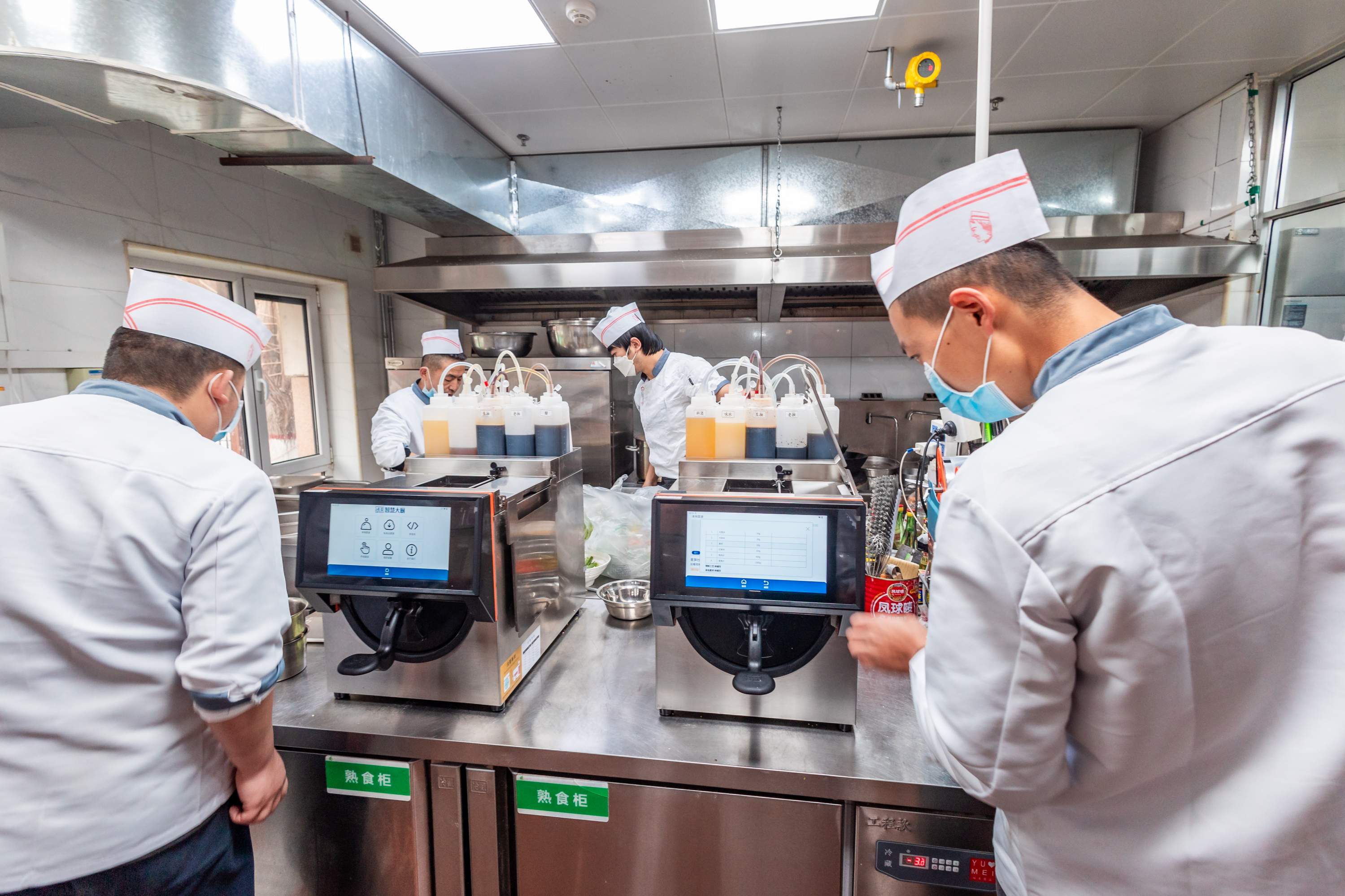 “自从请了这两位‘数字大厨’,2分钟能稳定炒出4道菜,最关键的是,每道菜味道天天一个样!”店长李师傅擦擦手,指着身后不到二十平方米的厨房感慨,“以前四个厨师转不开身,现在只需要两个人,游刃有余。”