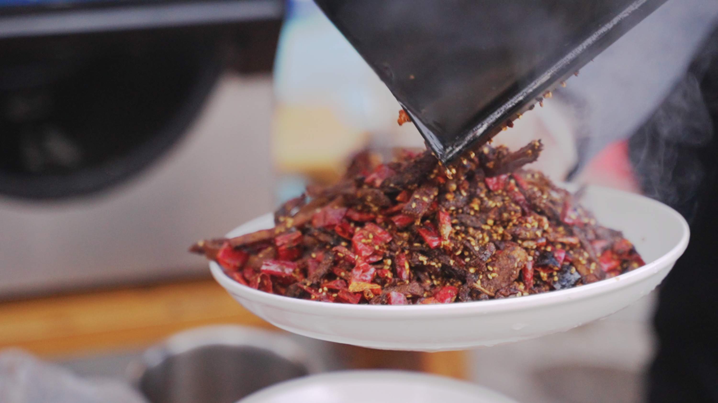 这样的故事不止一例。从兰州驱车前往成都的路上,在藏区一家夫妻小店,魏胜军被一道干煸牦牛肉丝深深打动。他“死缠烂打”,最终说服店主夫妻,在店门口的房车旁将这道承载着高原风味的独特菜肴录制、数字化,上传至云端。这道干煸牦牛肉丝从此加入到“云菜谱”,被更多食客品尝。