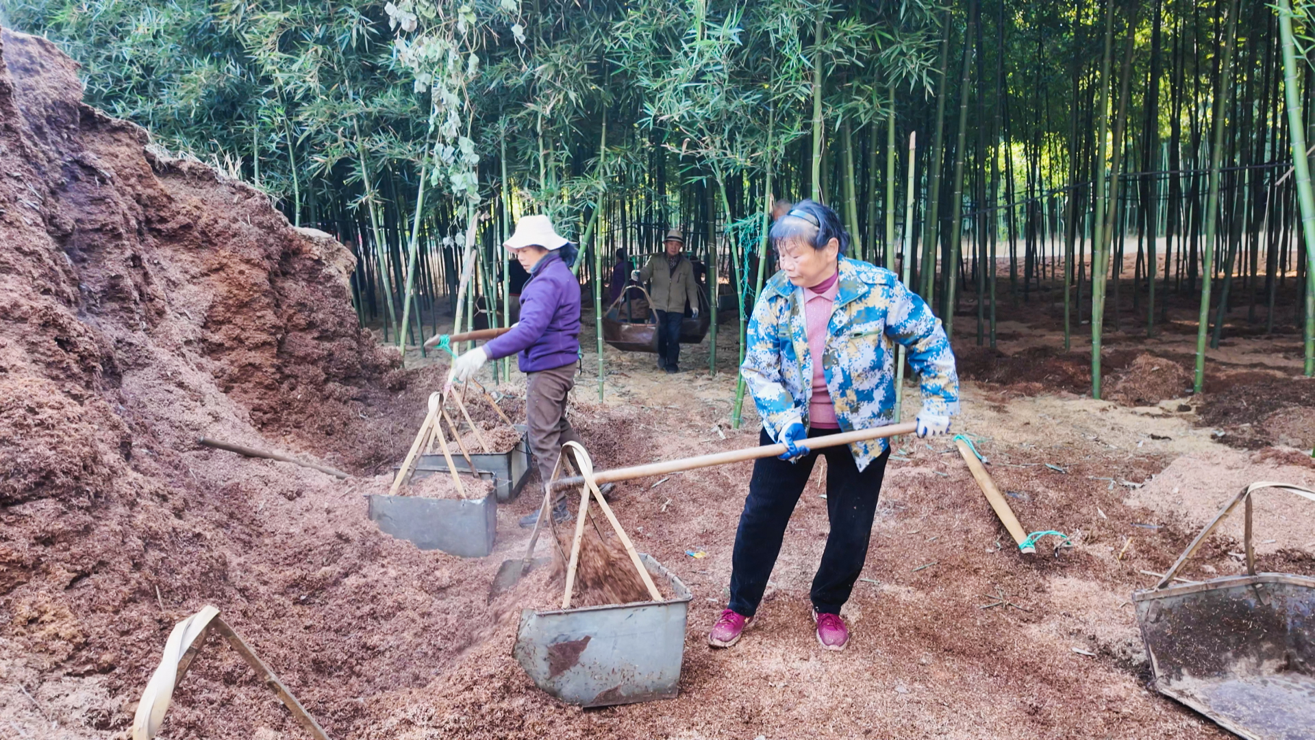 “往年这个时候,竹林早就荒了,现在每天能挣120元,还能照顾家里!”12月17日,青山镇长林村48岁村民雷细冰肩挑装满旧谷壳的竹筐,在三胖家庭农场的雷竹基地里来回忙碌。这片100亩的雷竹抚育基地,正进行着一场颠覆传统的冬管革新。
