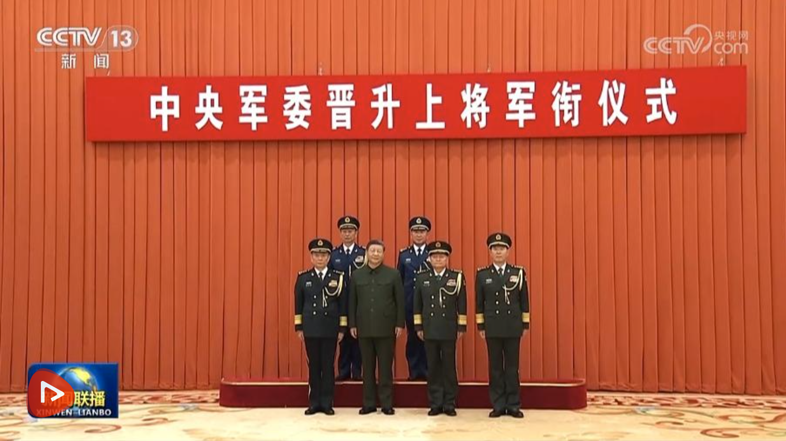 中央军委晋升上将军衔仪式22日在北京八一大楼举行。中央军委主席习近平出席晋衔仪式。