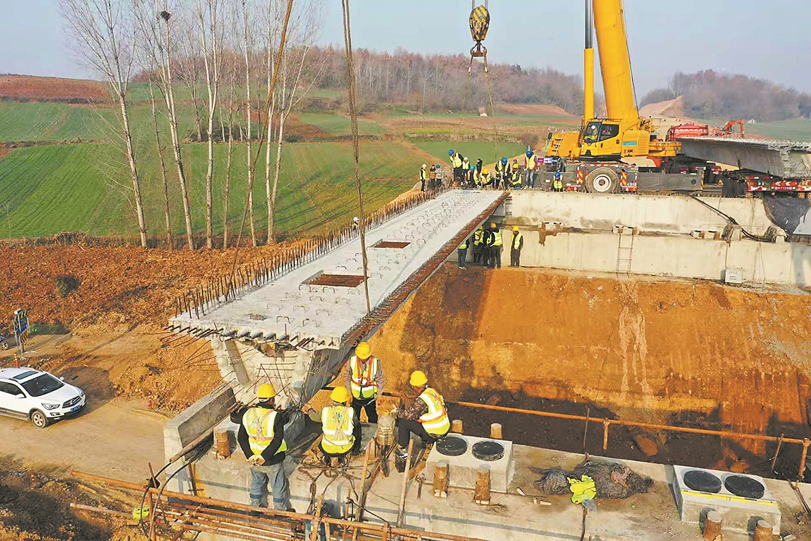 12月17日上午,在老河口市江山重工至241国道丹江口段道路工程一合同段施工现场,两台大型吊车正将一片重达50吨的箱梁平稳、精准地吊装到位。这一操作标志着付家寨一桥建设全面进入桥面上部结构施工的冲刺阶段。