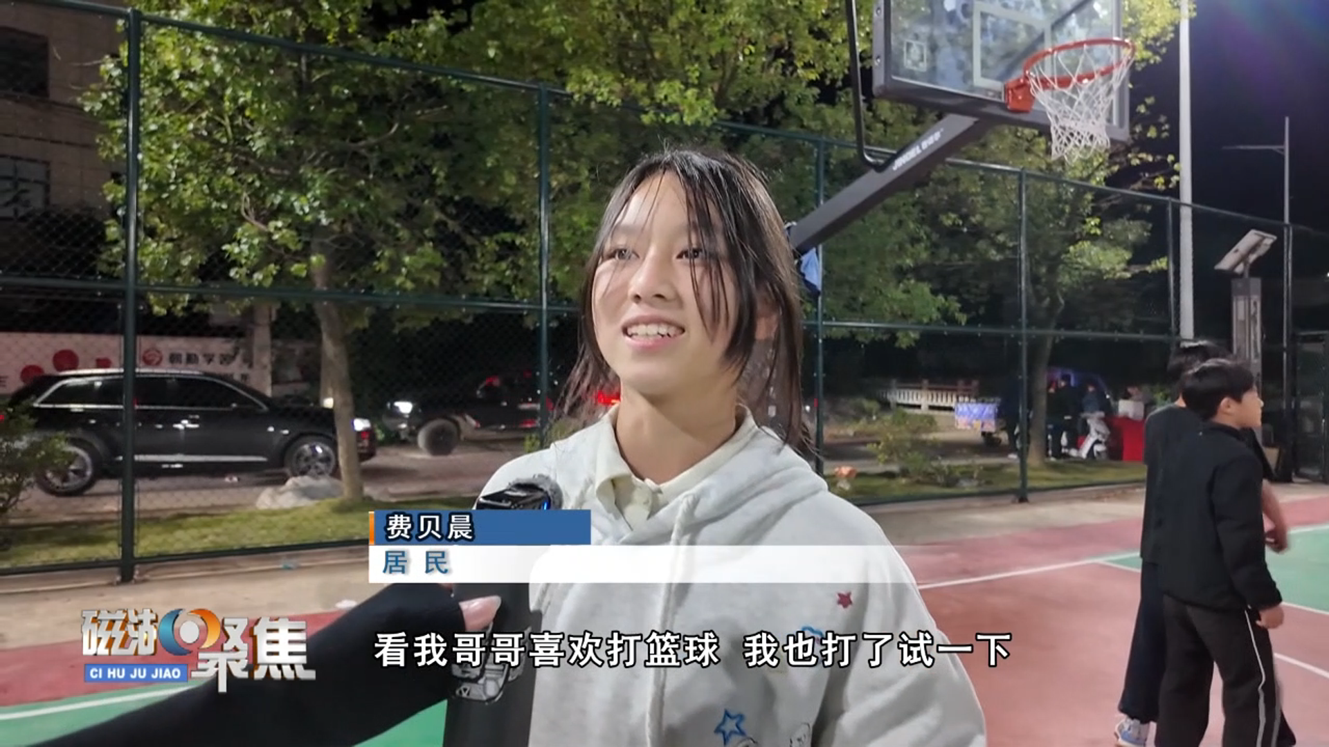 居民 费贝晨:看我哥哥喜欢打篮球,我也打了试一下。他只教过我一些,所以才来这里打一会。