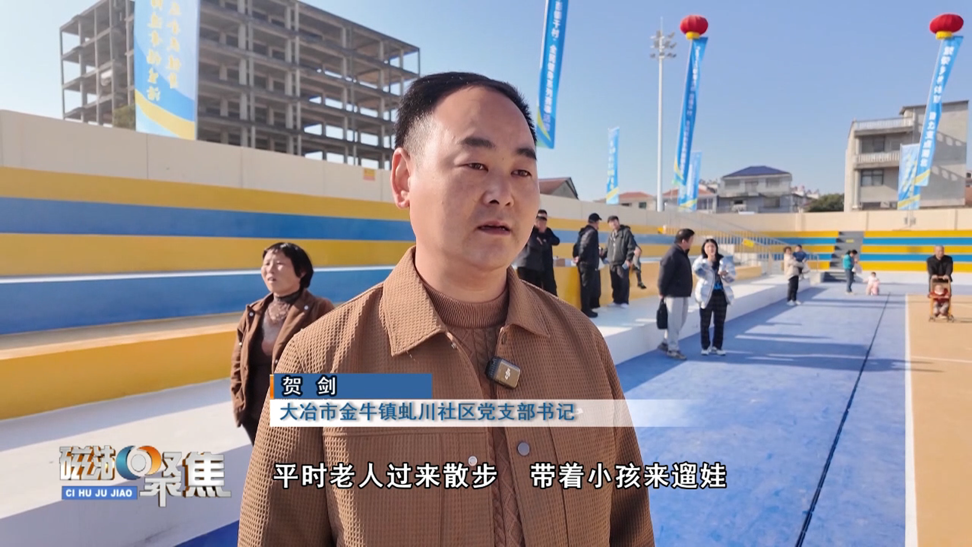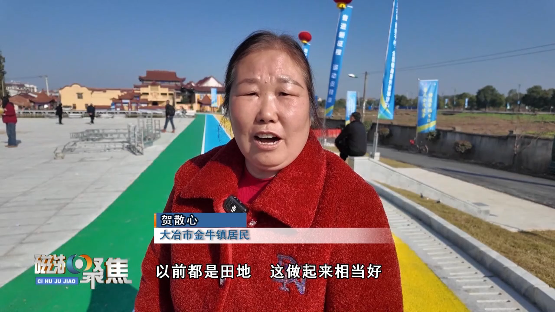大冶市金牛镇居民 贺散心:以前都是田地,这做起来相当好,金牛就这里地方大一些,做了活动场所非常满意。