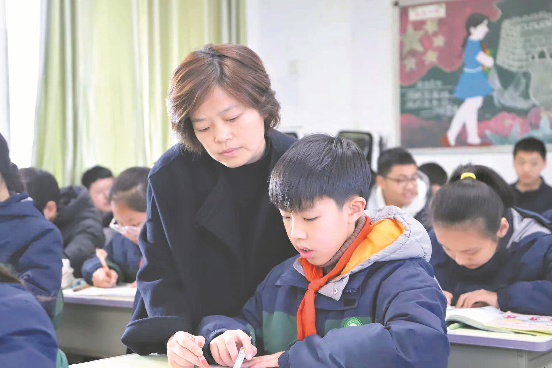周国惠将更多目光投注于孩子成长的细微处。曾有学生因父母职业感到自卑,她特意组织了一场“我的爸爸妈妈”主题班会,鼓励孩子们大方介绍家人的工作,分享父母在平凡岗位上的付出与收获。她告诉全班:“凭自己的双手劳动,值得每一个人尊重。”在她的引导下,孩子们逐渐建立起对家庭的理解、对劳动的敬意。“学会做人,向善永远是第一位。”周国惠说,愿每个孩子都能怀抱这份善意与底气,向阳生长。