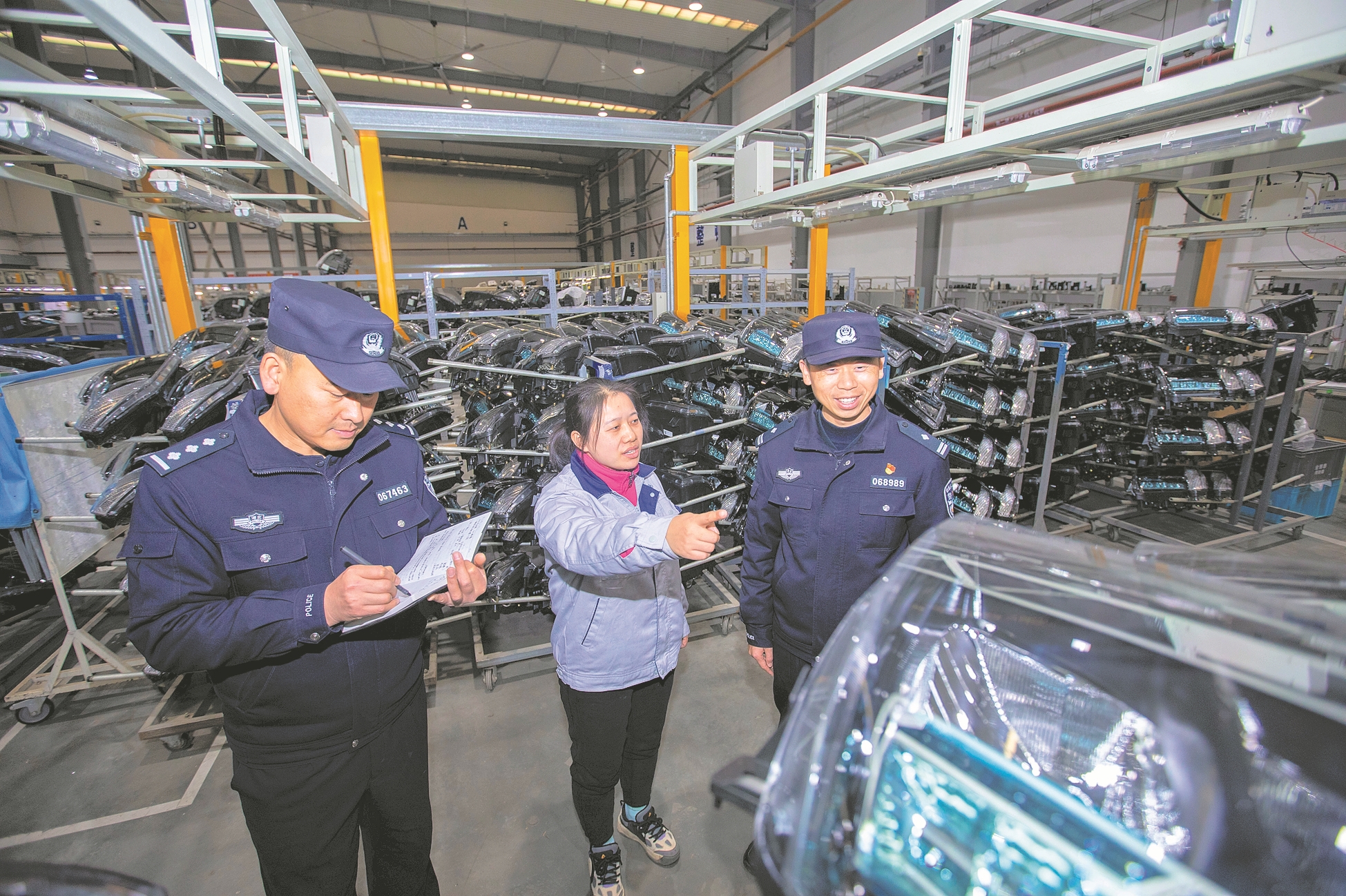 12月24日,市公安局襄城区分局余家湖派出所民警走进湖北环宇车灯有限公司,详细了解企业安全生产情况和日常管理措施,重点检查了厂区消防设施配备、用电用气安全、值班巡逻制度落实等情况,并指导企业完善应急预案和台账资料,引导企业增强安全意识和法治意识。