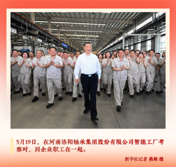 “到厂里多久了?”“什么学历?”“上岗培训是怎么做的?”“收入怎么样?”初夏时节考察河南,习近平总书记同洛阳轴承集团股份有限公司的职工们亲切交流,勉励他们“发扬主人翁精神”。大家簇拥在总书记身边,意气风发,大步向前。