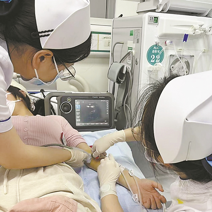 近日,在襄阳市第一人民医院血液透析中心,65岁的尿毒症患者周女士正接受一项创新治疗:专科护士手持超声探头精准定位,屏幕上清晰显示桡动脉-头静脉内瘘的三维影像,随着0.5毫米微调穿刺针角度,一次性成功建立透析通路。这项被称为“超声导航穿刺”的创新技术,已累计服务2000余名透析患者,将血管通路并发症发生率降低72%,其中疑难病例穿刺成功率保持在98.6%的高水平。