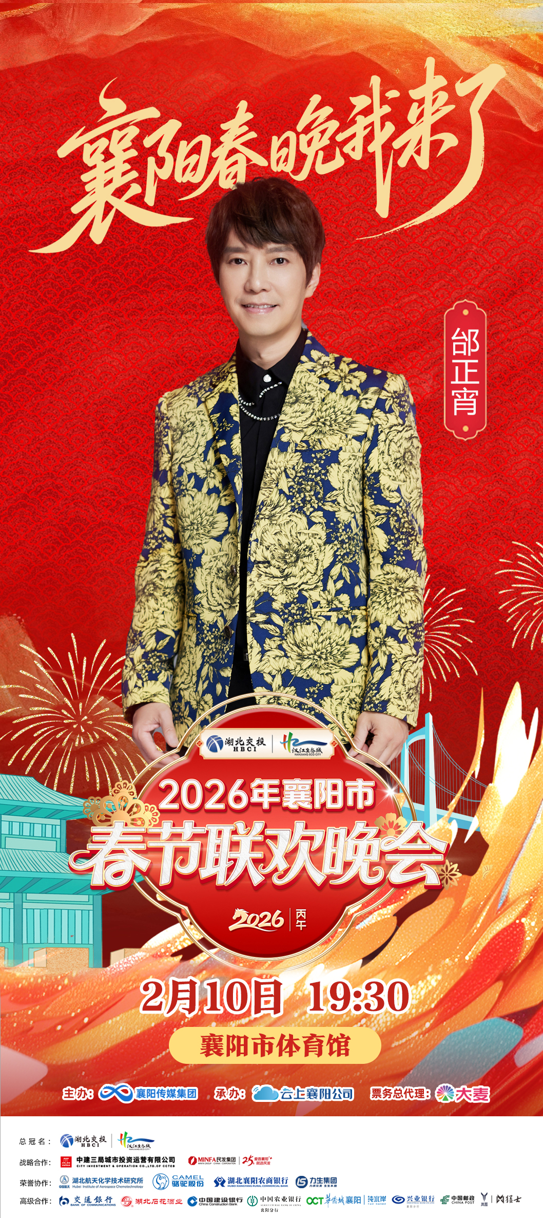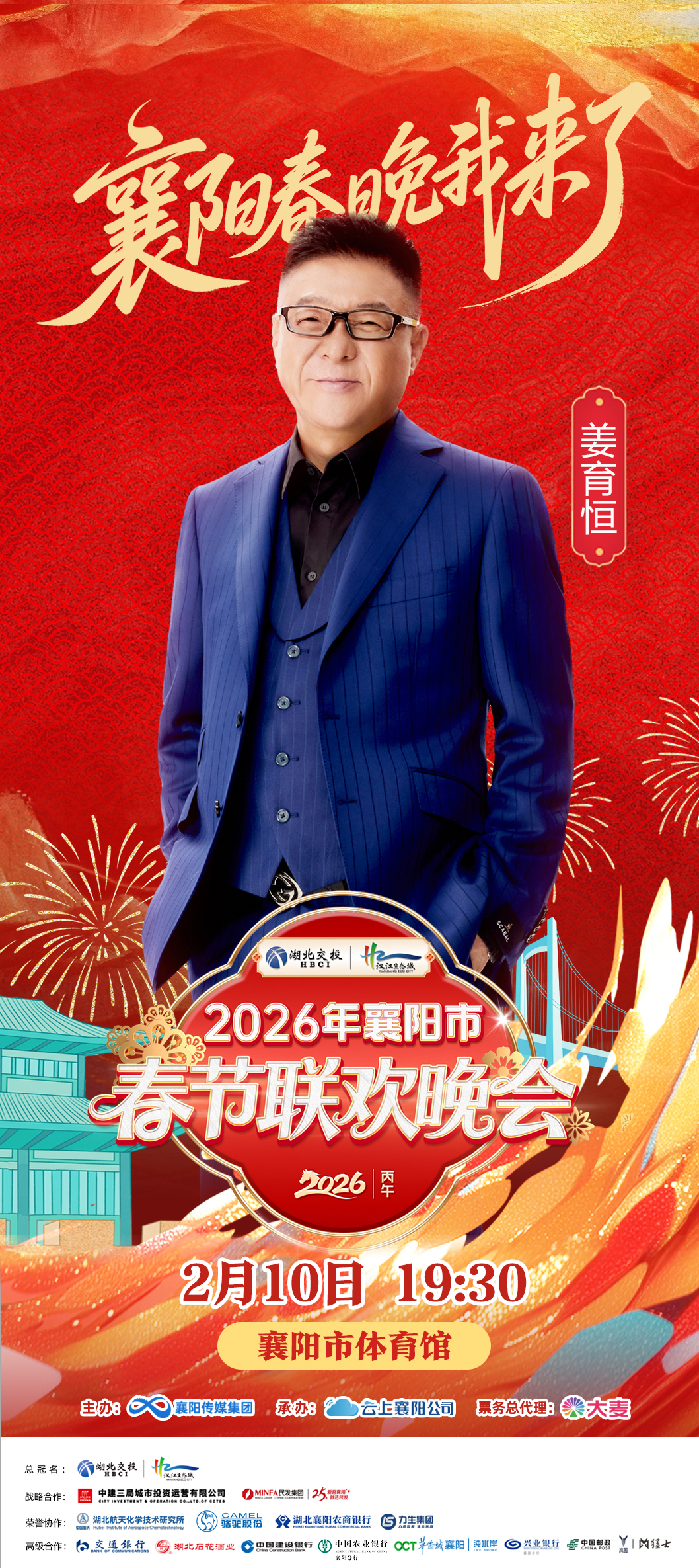 2025年12月31日,湖北交投汉江生态城2026年襄阳市春节联欢晚会正式官宣,定于2026年2月10日(农历小年夜)19时30分在襄阳市体育馆举行。本届春晚由襄阳传媒集团匠心打造,以市场化模式运作,将在规格与体验上实现全面提档升级,打造一场全民参与、共庆团圆、致敬时代奋斗者的新春盛事。
