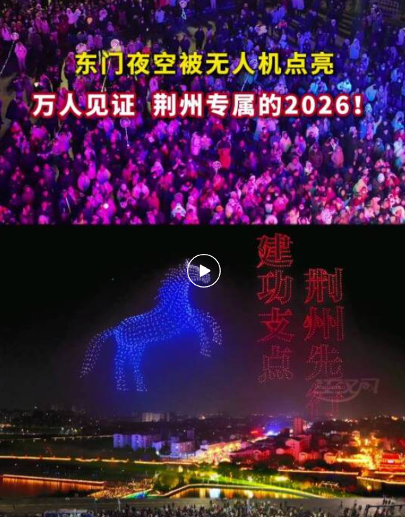 从天空到水下,从科技光影到非遗火焰,荆州用一场多维度、多感官的夜色交响,为新年拉开了震撼的序幕。