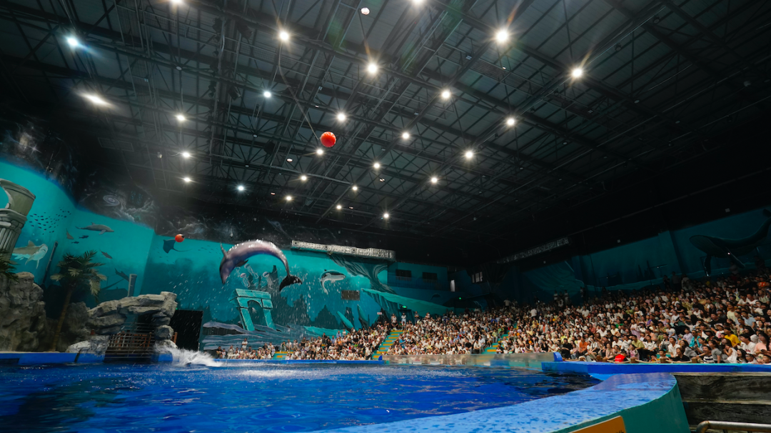 荆州小梅沙海洋馆首次开放夜场。美人鱼化身楚女,蔚蓝水体中“水下楚舞”搅动一池星辉。馆外广场上,川剧变脸吐火、火舞火壶、电子火花秀等非遗绝技轮番上演,打造冰火两重天的奇幻体验。